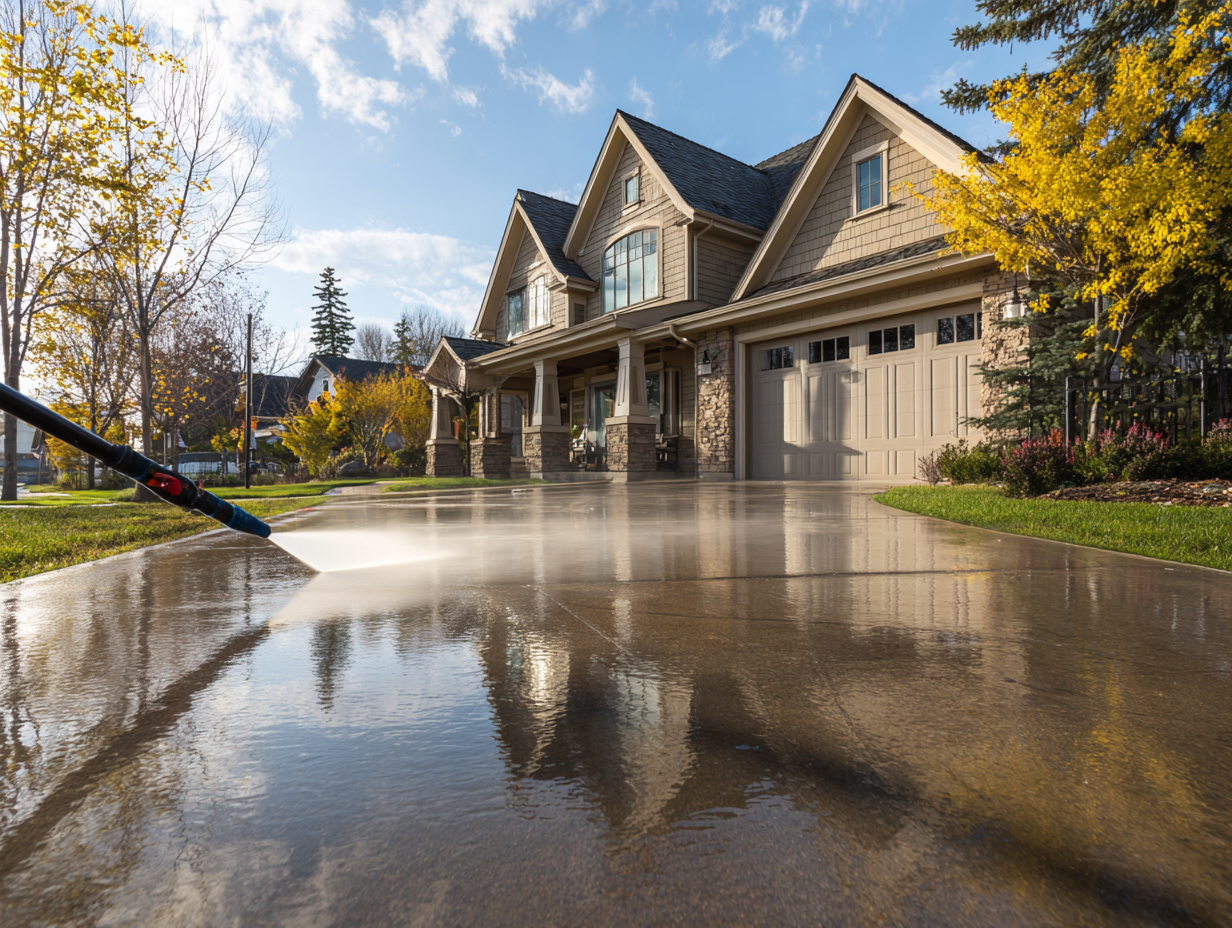 - Driveway & Walkway Cleaning: Eradicating organic stains, tire marks, dirt, and discoloration from concrete, pavers, and asphalt.